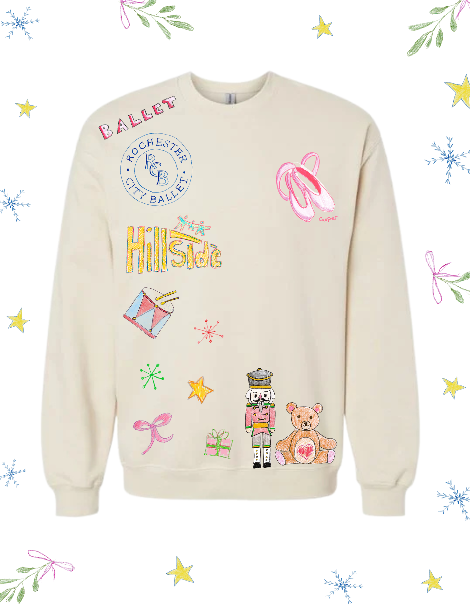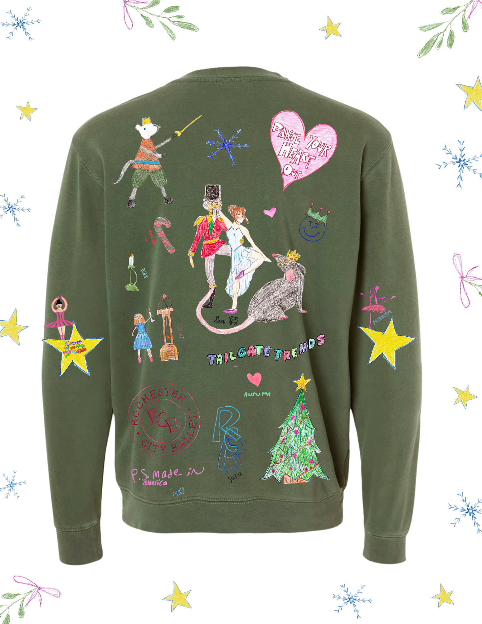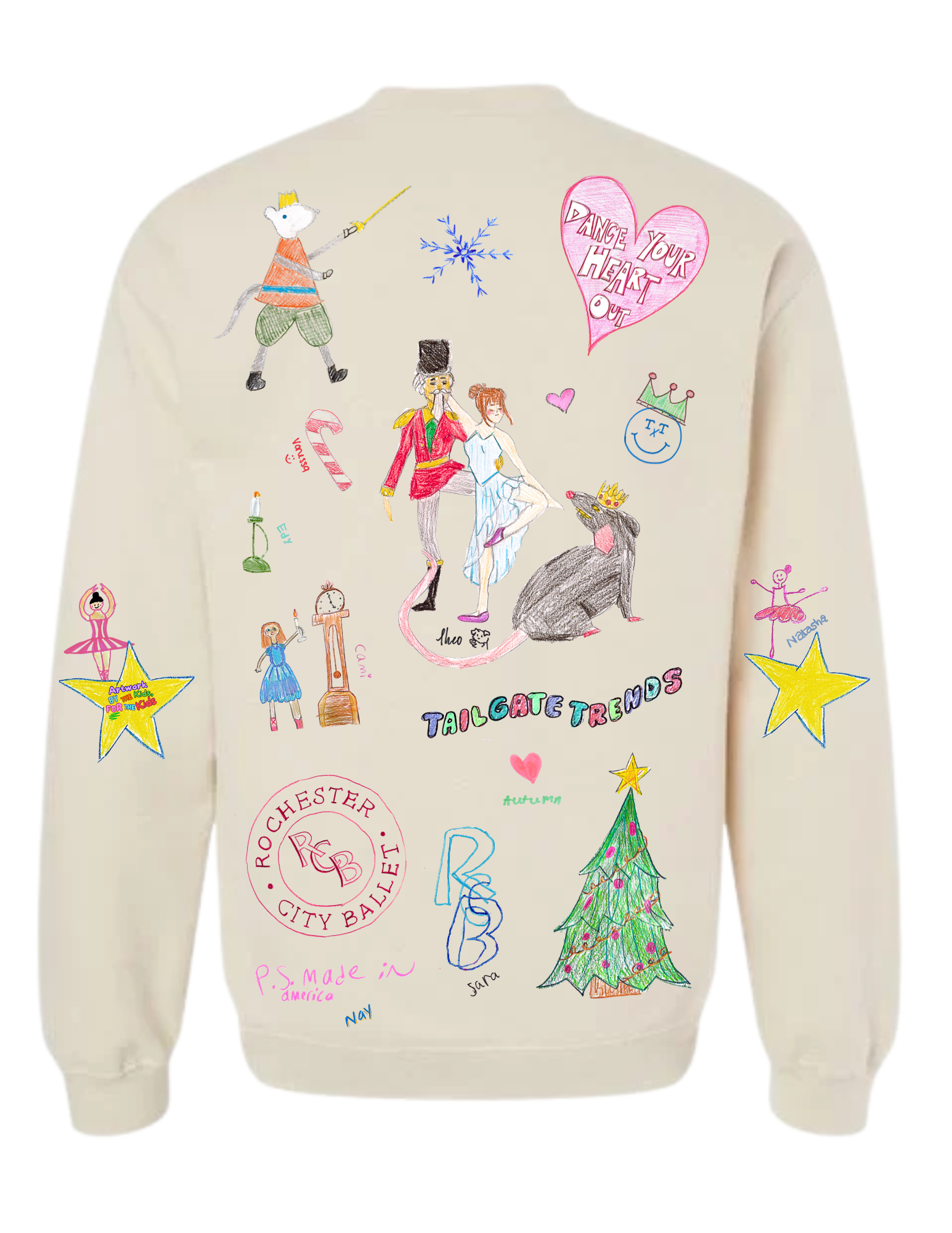 Rochester City Ballet and Tailgate Trends have teamed up to bring you a limited-edition Nutcracker crewneck—featuring artwork created by children in the Community Dance Program. Every purchase helps support free dance classes for Hillside students, taught by RCB’s professional dancers.